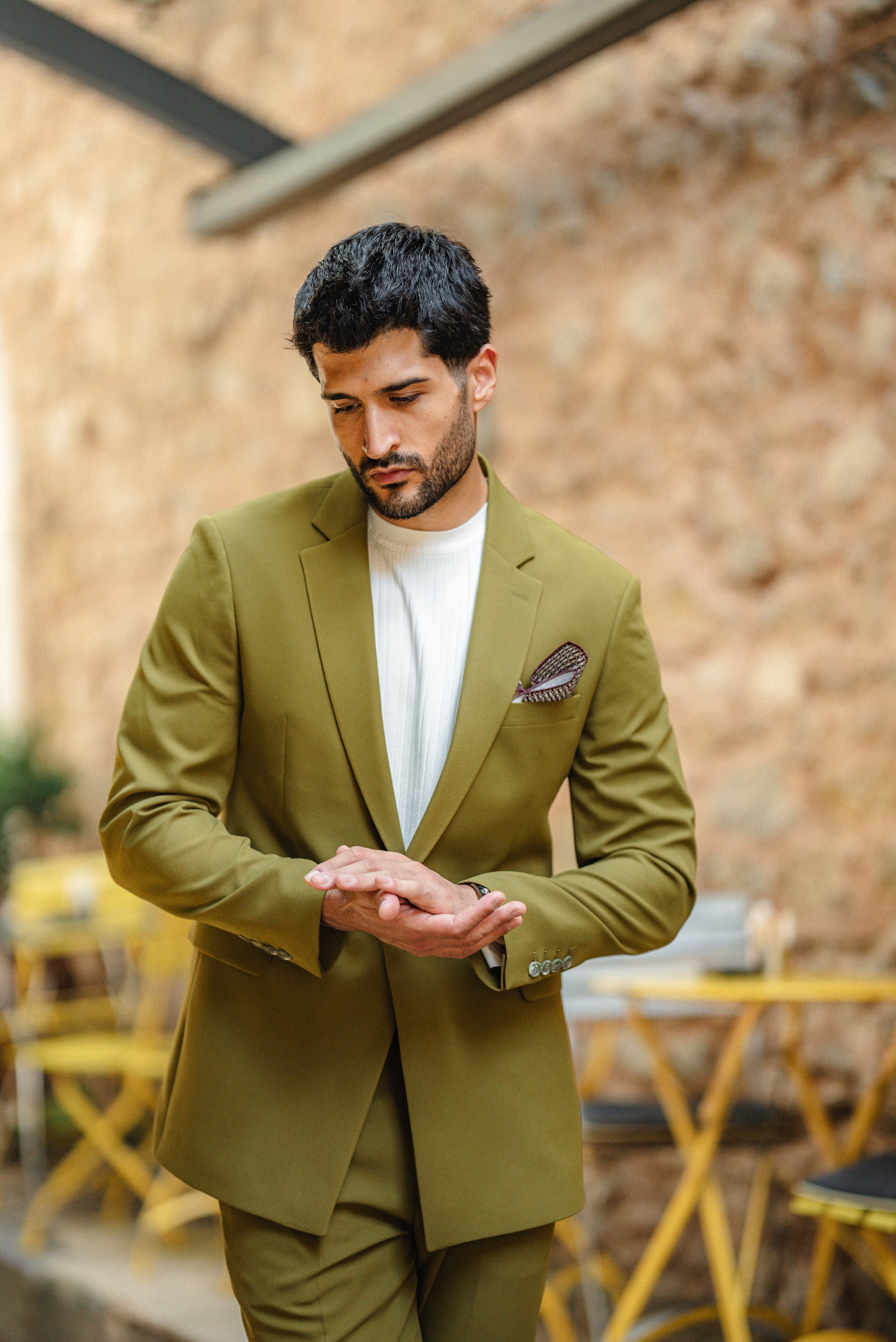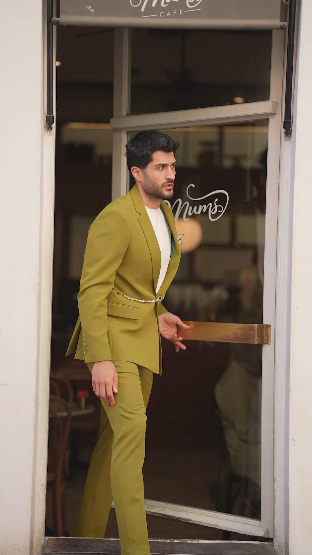 Green Chain Detail Mono Collar Suit