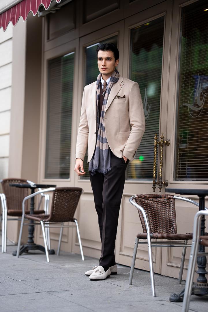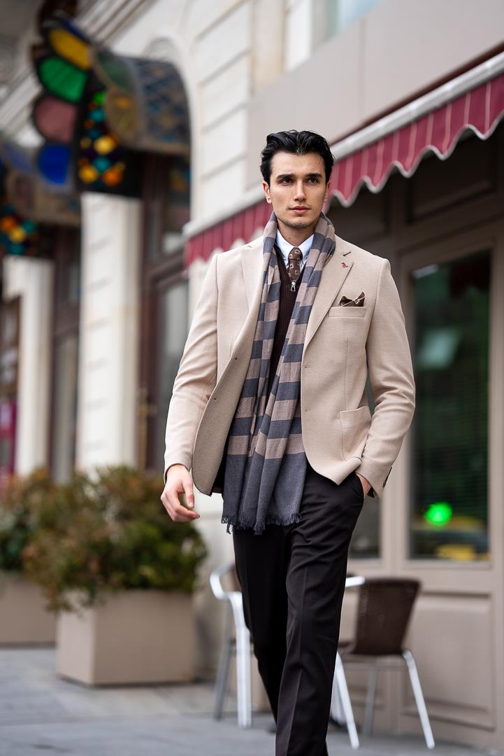 Introducing our Men's Beige Slim Fit Mono Collar Blazers,