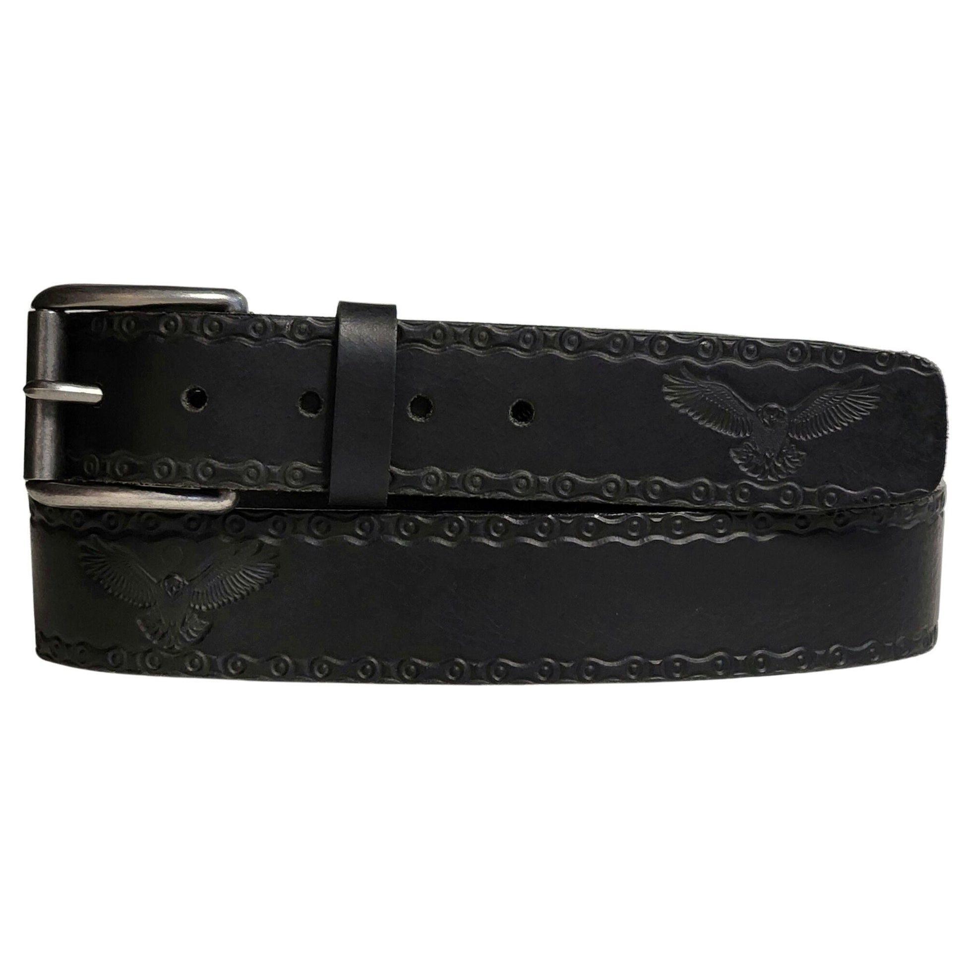 The Eagle Belt- Black Chain Link Embossed 100% Real Leather Belt