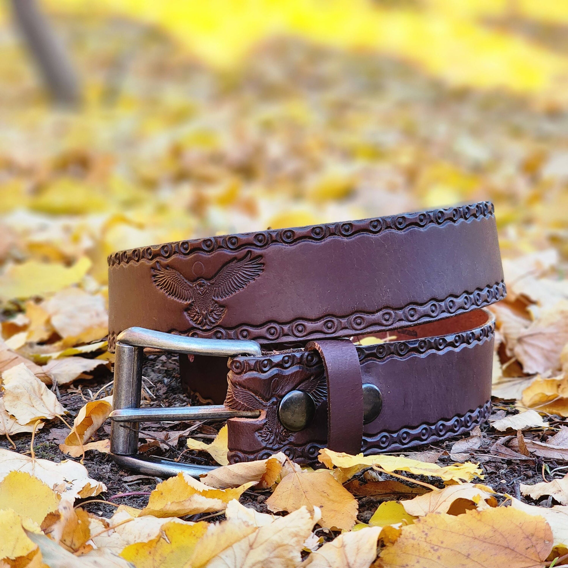 The Eagle Belt - Brown Embossed 100% Real Leather Belt Made in Canada
